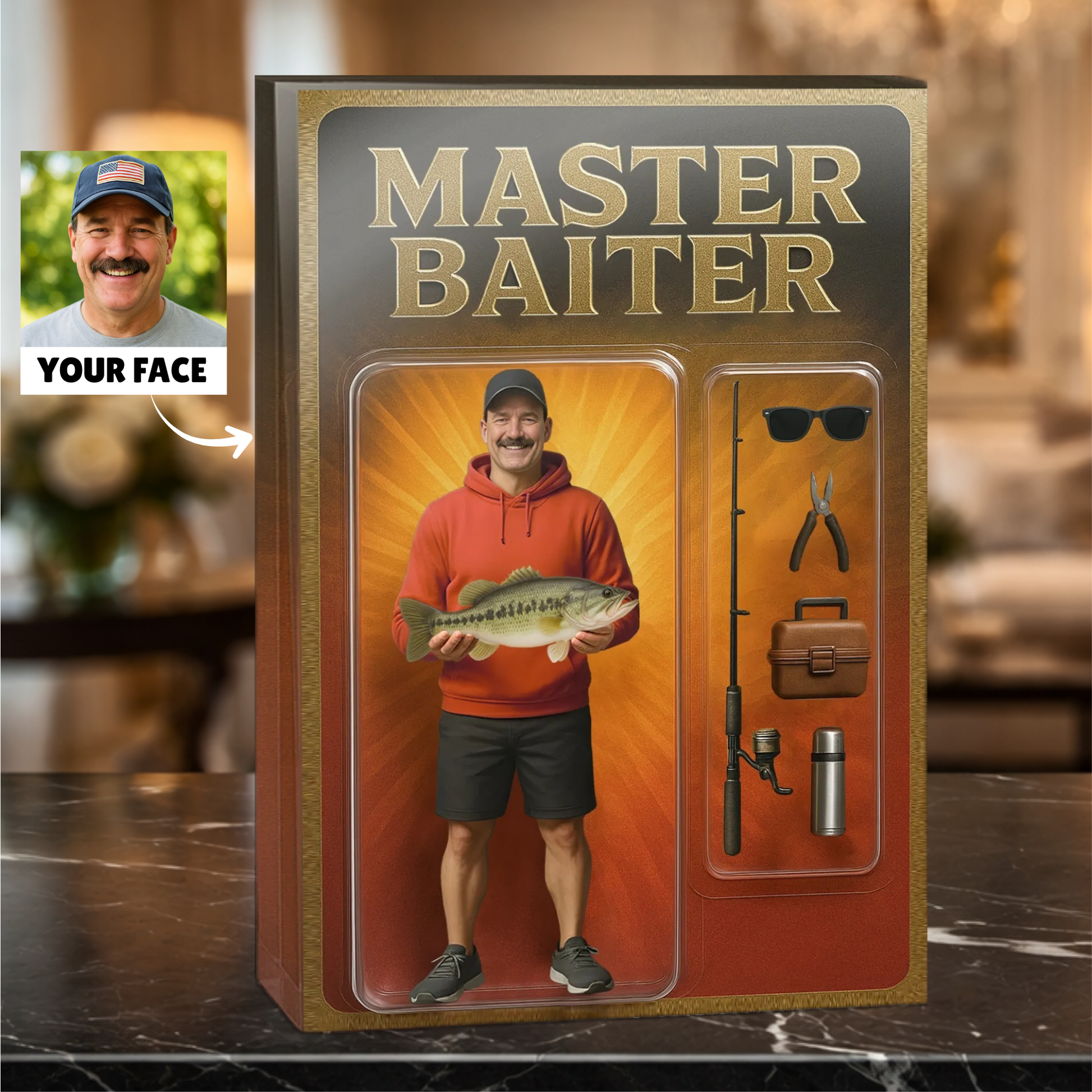 This is a custom face product – we’ll add your face into our ready-made design.