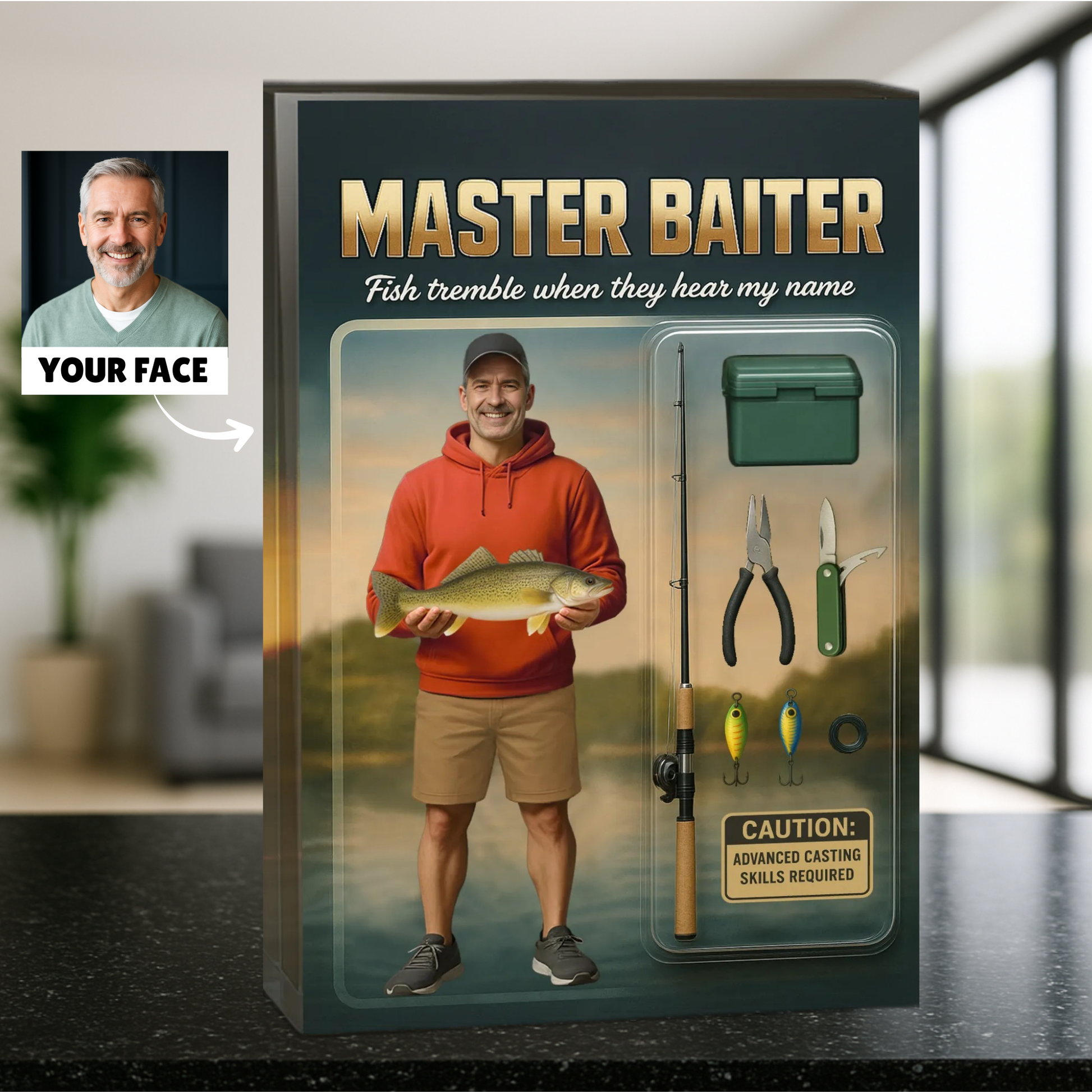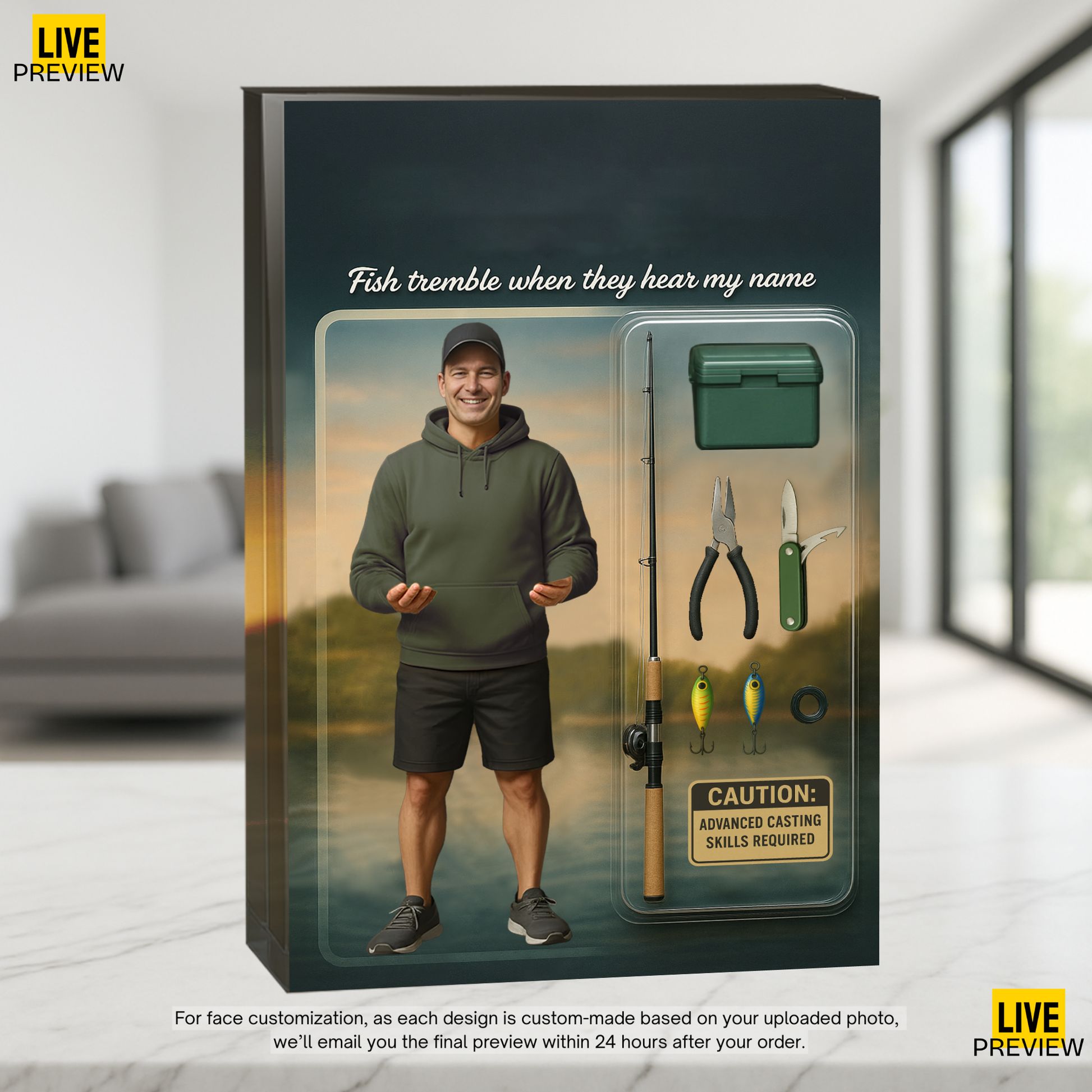 This is a custom face product – we’ll add your face into our ready-made design.