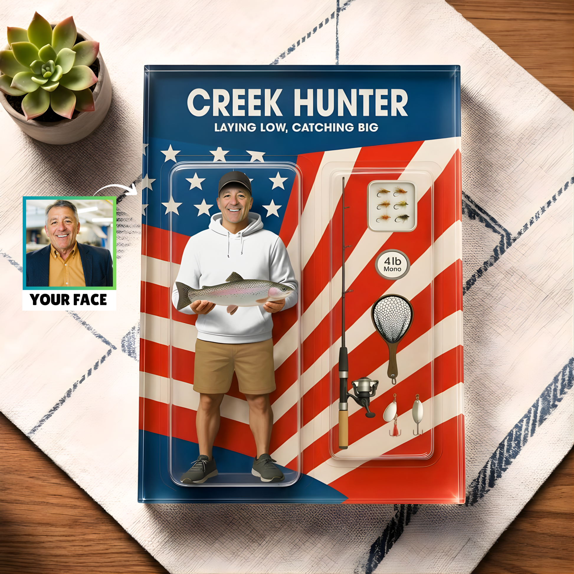 This is a custom face product – we’ll add your face into our ready-made design.