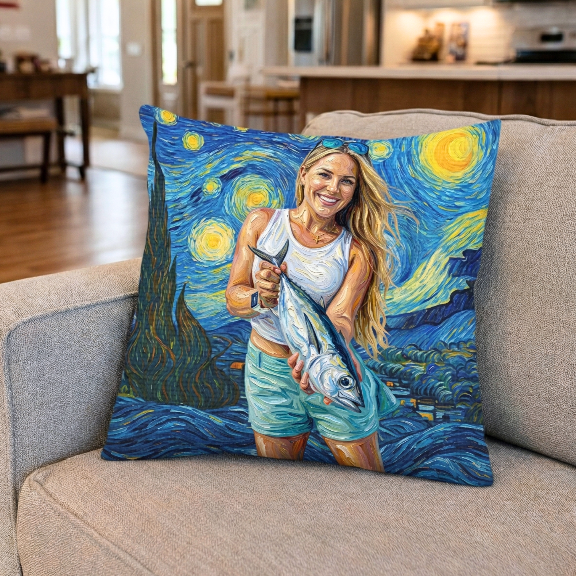 Custom Fishing Photo Starry Night Art - Personalized Pillow