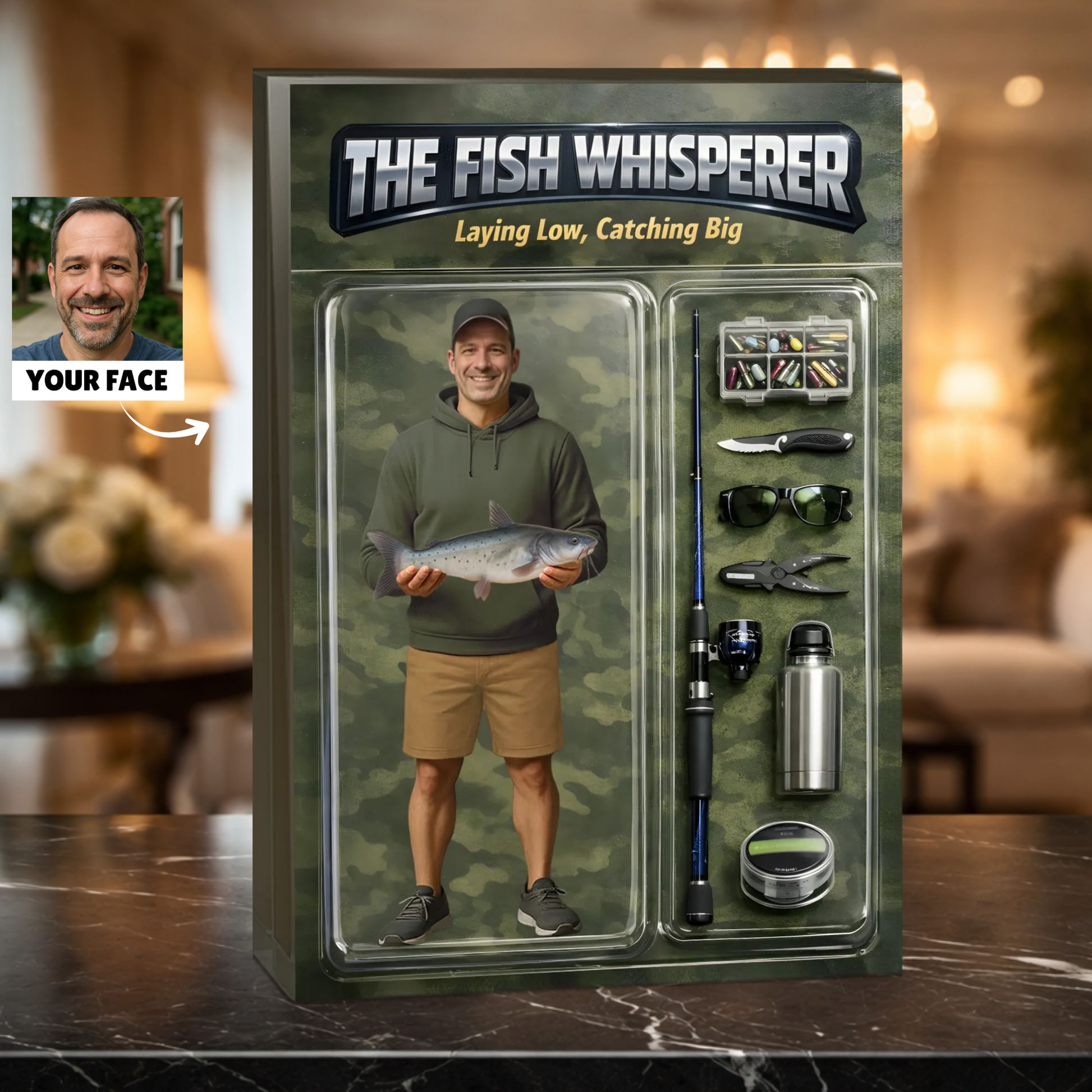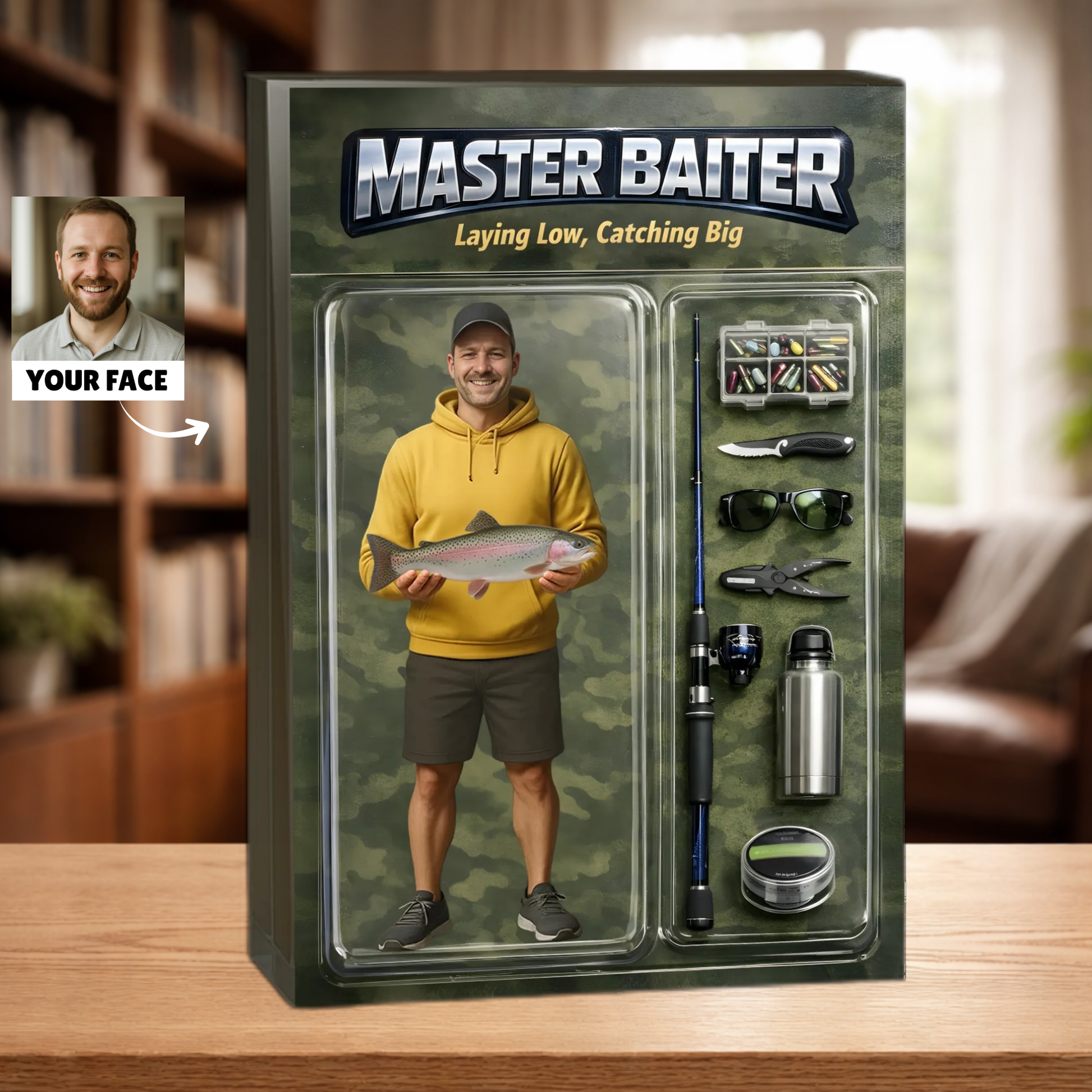 This is a custom face product – we’ll add your face into our ready-made design.