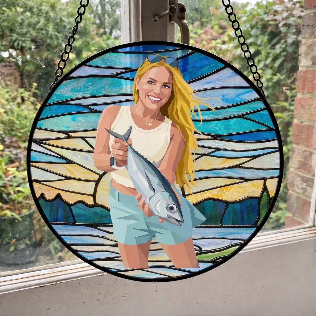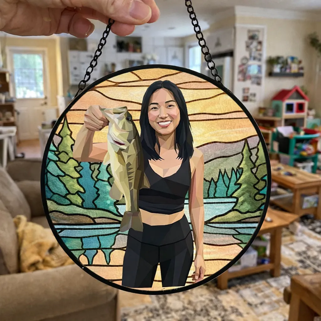 Custom Fishing Photo Potrait - Personalized Stained Glass Window Hanging Suncatcher