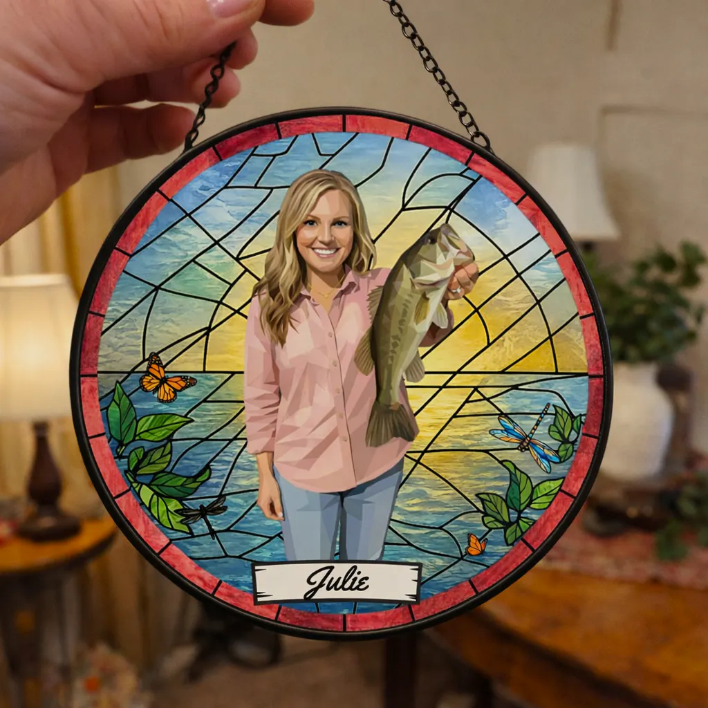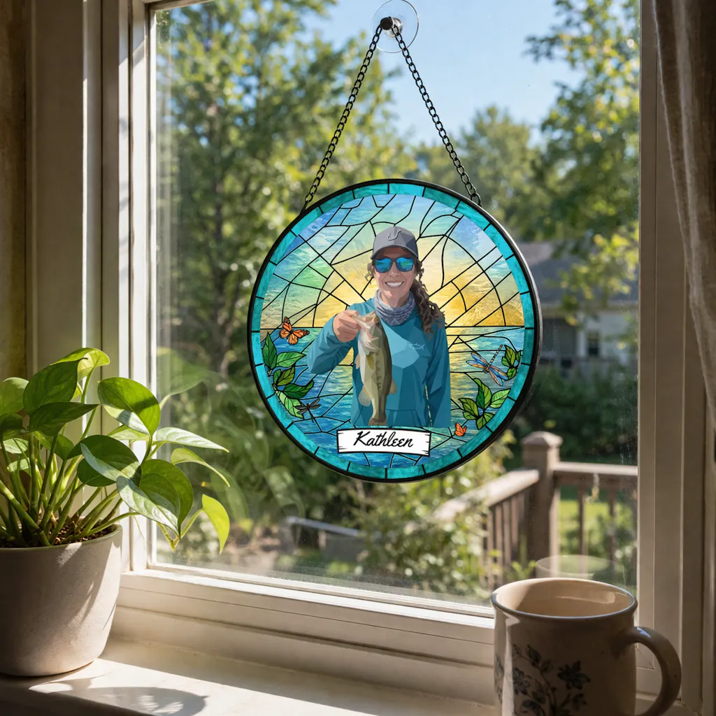 Custom Fishing Photo Potrait - Personalized Stained Glass Window Hanging Suncatcher