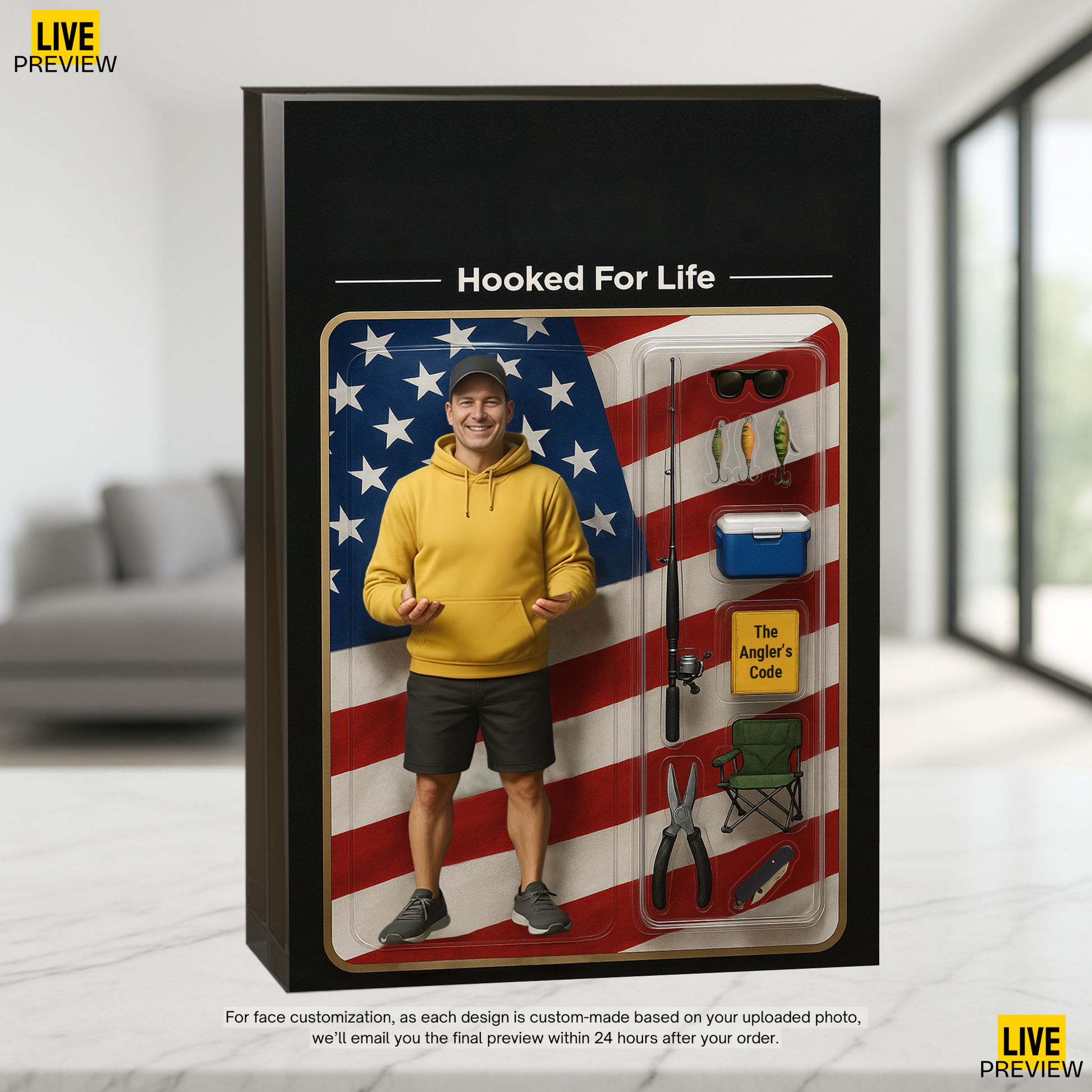 This is a custom face product – we’ll add your face into our ready-made design.